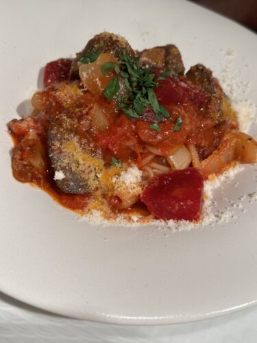 一緒に行った方は鴨のズリと玉ねぎのアマトリチャーナを選んでいました。鴨のズリ一個いただきましたが美味しかった~!