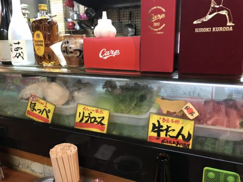 つづいて豚耳をいただきます!集来軒さんの豚耳は私の知るところでは広島で一番おいしいんじゃないかと思います。焼き加減もすばらしいです~!赤星がすすむ~!