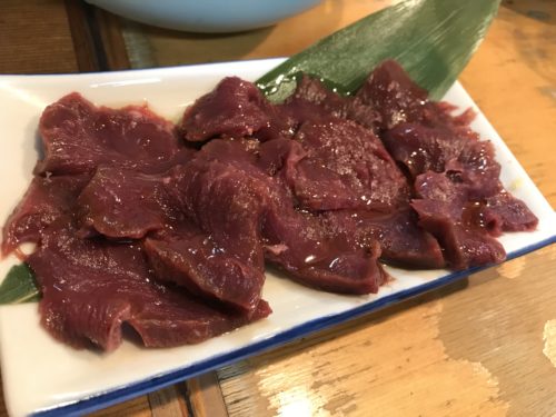 まずはヤサキのお刺身からいただきます!生レバーやユッケが食べれなくなってしまった今、このヤサキ刺しが癒してくれますね~!ごま油をちょちょいと付け足していただくと、あ~おいしい~!最高ですよ~!