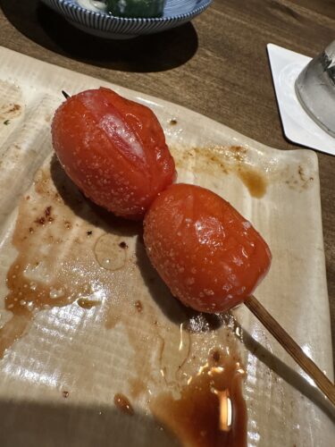 あいこが登場しました!このトマト串焼きにほんとあいますね~!酸味と甘みのバランスがほんといいですね!