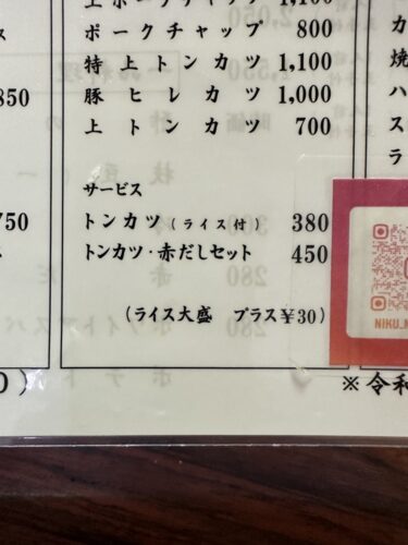メニューをみるまでもなく、サービスとんかつをお願いします!