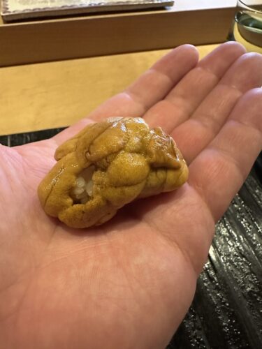 さて、広島が誇るリゾート施設ベラビスタさんの鮨双忘さんのラストです。瀬戸内海の魚中心に握ってくださるのでマグロは基本的にはないそうです。でもマグロなくてもぜんぜん大満足!このウニなんてほんと濃厚で最高でした!