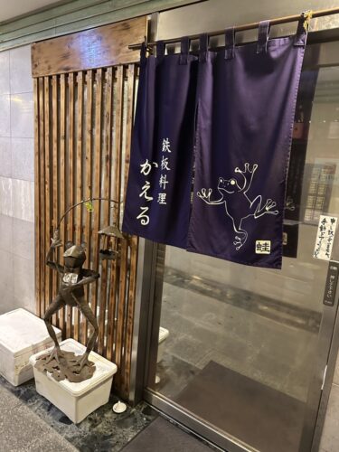 さて、先日先輩に誘っていただきまして鉄板焼きのお店に連れて行ってもらいました。お店の名前は、、、かえるさん。かえる?まさかかえるが食べれるのかな?といろいろ頭の中がぐるぐるした状態で入店!