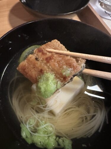 貴重なんですね!いただいてみると確かに細い!お出汁がめっちゃ美味しい~!うなぎも最高です!