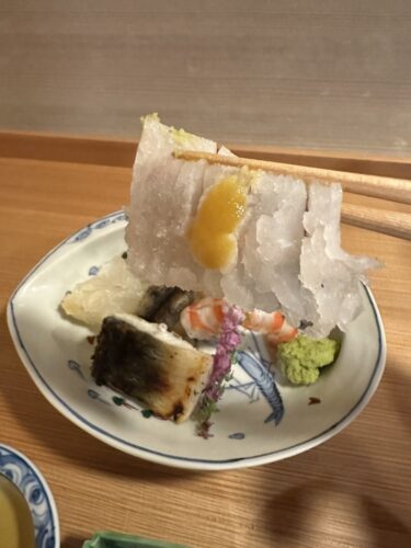 続いて鯛の昆布しめが登場しました!昆布〆特有の風味がたまらないですね!