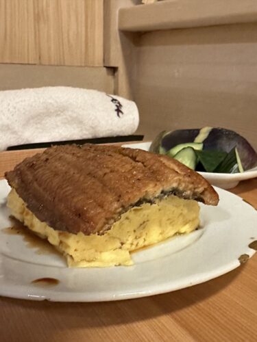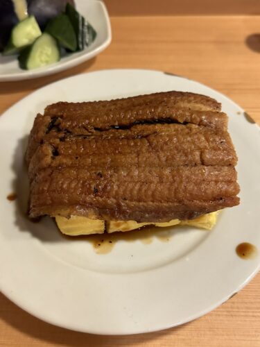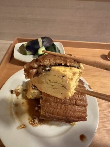 ほんと香りがなかったら何か全くわかんなかったと思います。そうなんです、この日は鰻だったのでうなぎ!しかもうまきならぬ玉子焼きにうなぎのせ!これ写真だと大きさわかんないかもしれませんね。