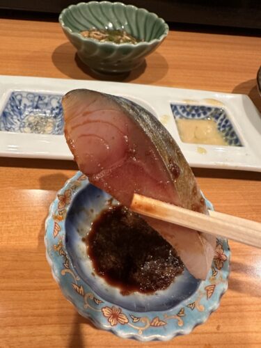 立派なわさびが一緒に登場するのが一政流!もちろんブランドわさびです!たっぷりわさびをつけてしめ鯖をいただきます。脂ののりが本当にすごい!やばい美味しさです!