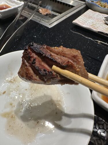 あまりに美味しいのであっという間になくなりました。でもすぐ次の上質なお肉が!部位は不明ですがこちらも美味しそう!しっかり焼いていただきました!少し焦がしておくとお肉の甘みと焦げの部分がちょうどよくあいますね~!ほんとタレも美味しい~!