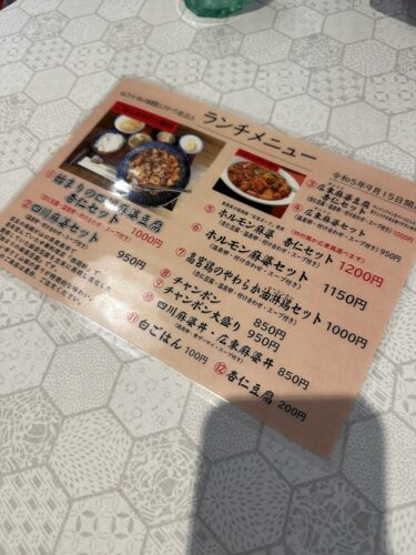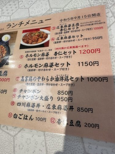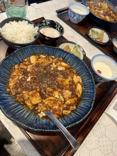 メニューの中から私は始まりの四川麻婆豆腐セットをお願いしました。一緒に行った方はホルモン麻婆豆腐をお願いされていました。