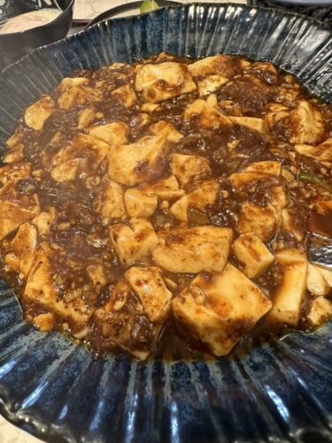 まずはホルモン麻婆が登場しました!いい色をしていますね~!香りもとってもいいです。