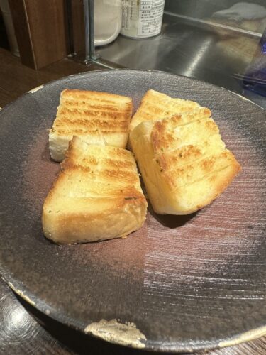 ガーリックトーストもめちゃうまです!鉄板でパンを焼くとほんとふっくら焼きあがりますね~!
