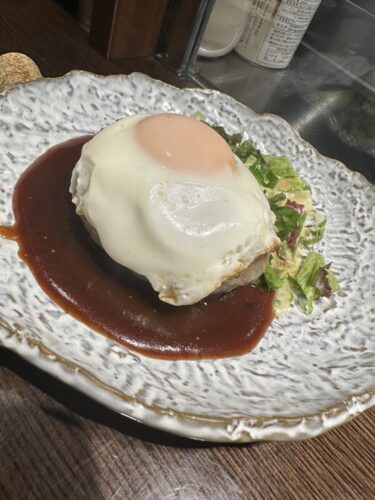定番のハンバーグはやっぱり外せません!ほぼ肉100%じゃないかな?肉肉しいハンバーグと半熟卵は最高のコンビですね!