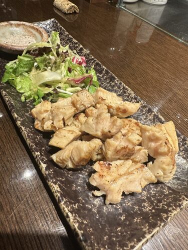 なかなかお目にかかれない青森県のブランド地鶏、シャモロックをいただきます。お肉の弾力と皮のうまみがたまらないですよね~!パリっとした食感がきたと思ったらジュワ~と肉汁が!最高ですよ!