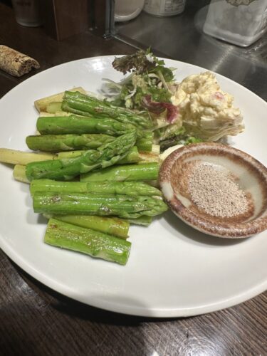 野菜もとっておかないと~ということでアスパラをいただきます。バターの香りがいいですね~!