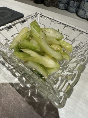 メニューをみてみると確かに道仲さんぽいですね!この日はお任せでお願いしました。まずはセロリの浅漬け!これ抜群!