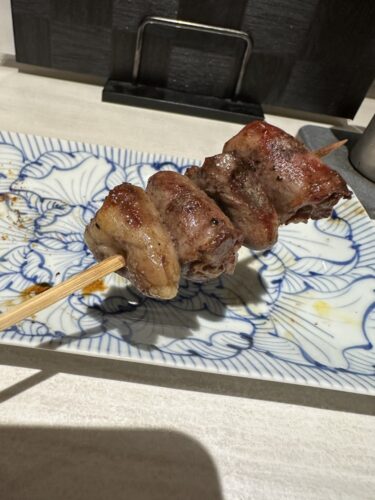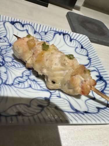 ねぎまはネギを皮でしっかり抱かせているタイプでした。とにかく肉厚で肉汁がしたたりおちる~!最高です!