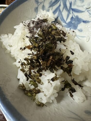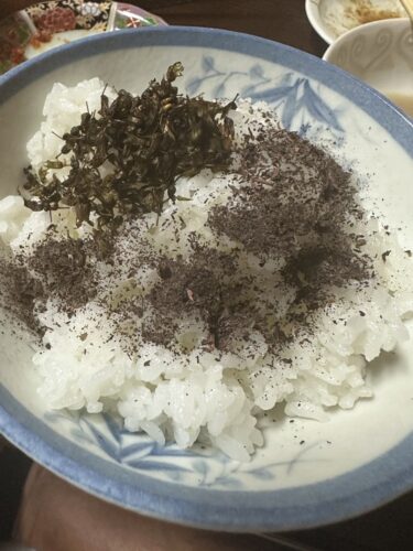特製のしその実ふりかけを頂きます。めちゃめちゃ美味しい!