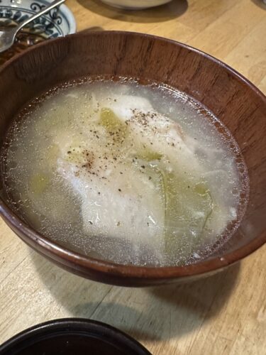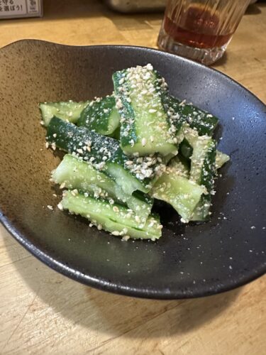 まずはいつものたたききゅうりから!これめっちゃおいしいんですよね~!しゃきっとしたきゅうりの食感と浅漬け風の風味がたまらない!あっという間に食べきっちゃいます!