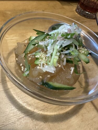 くらげ酢もおすすめですよ~!ぎょうざ屋さんのくらげ酢は大きさがちょうどいいんですよね~!