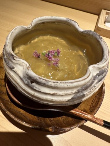 焼きナスのすりながしを土佐酢ジュレと一緒にいただきます。これまた美味しい~!