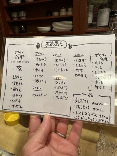 メニューをみながらいつものようにお任せで串はお願いしました。飲み物は、、え~っと、、、そうだ!嵩山だ!すでに終売になっている嵩山ですが、みのわさんには在庫を入れてもらっていたので残っているんです。これ美味しいんですよね~!