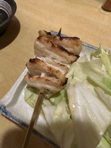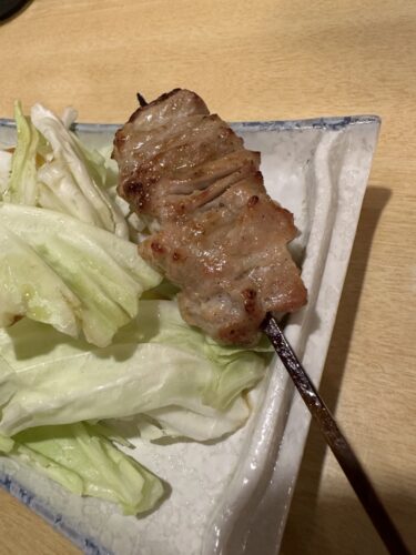 続いてさび焼きをいただきます。ささみにたっぷりとわさびをつけていただきます。からっ!うま~!この連続です!ささみのレア感がたまらないですね~!ささみが美味しいお店はすべて美味しいって勝手な法則をもっていまして今まで外れがありません。ささみの扱いって大変なんだと思います。