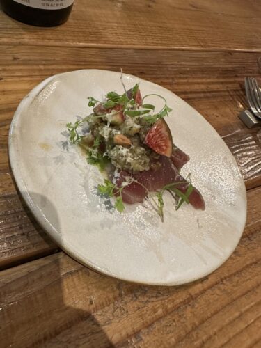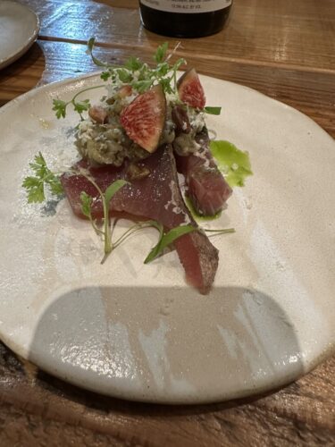 続いてのお料理はカツオの炙り!イチジクと焼きナスに山わさびを添えてありました。