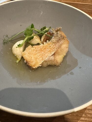 お魚は甘鯛の鱗焼き!甘鯛の出汁のソースに青ネギのオイルで仕上げてありましたが、もう抜群!お皿をなめたくなるほど!