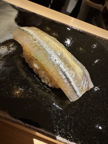 ここで鮨松さんの中で大好物の一品、サヨリが!鮨松さんのサヨリほんと美味しいです。味わい深いというかどうやったらこんなにサヨリが美味しくなるのか。すごい!