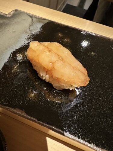 次は甘えびの醤油漬けが!甘えびの甘さとお醤油がいい感じにマッチしています。
