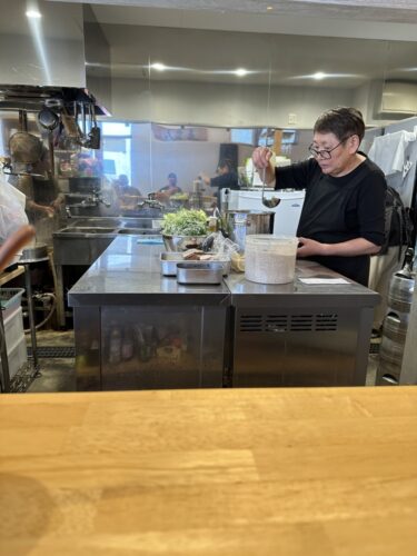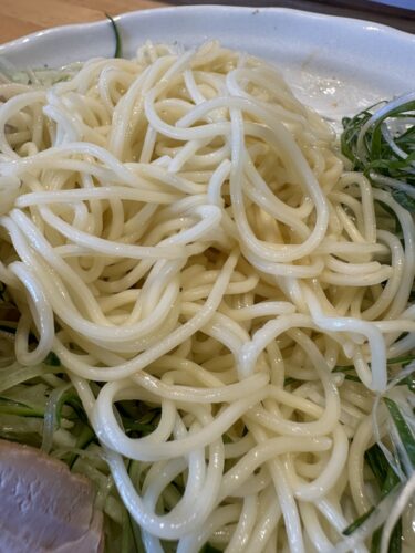 先に野菜をすべていただいてつづいて麺をいただきます!もちろん麺は原田製麺さんのつけ麺用の麺!めちゃめちゃ美味しい~!2玉でも平気でいただけちゃいます!