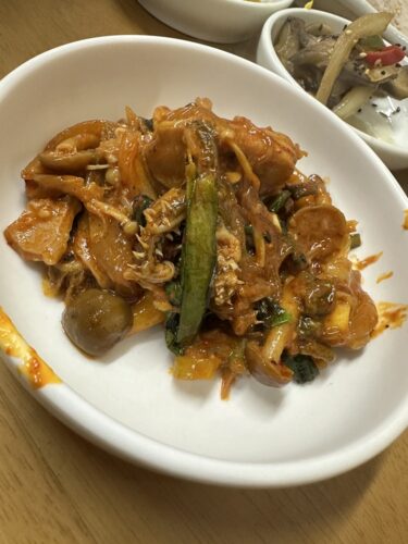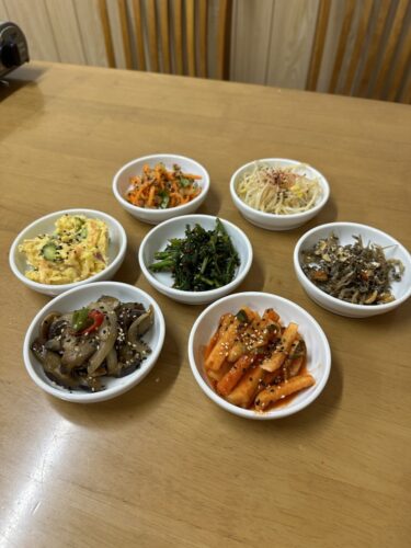 まずはアリランママ手作りのお惣菜からいただきます。たくさんの種類をそろえてくださってどれもほんと美味しんですよね~!これだけでずーっとビールがすすんじゃいます~!