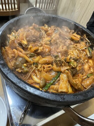 そして出来上がったホルモン鍋をいただいてみるとこれがまた美味しいのなんのって!素晴らしい~!一緒に生マッコリをお願いしてぐびぐびいただいちゃいます!