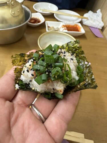 最後はチャンジャ巻きでしめました~!結構多めに作ってくださってありがたい!激うまでした!