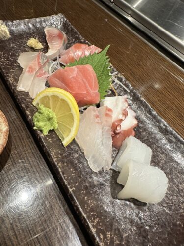 メニューを見ながらまずはお刺身の盛り合わせからいただきます。