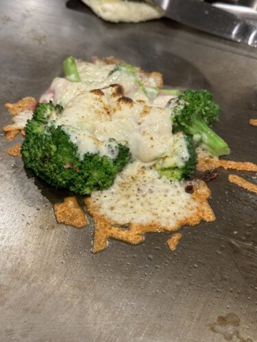 ブロッコリーを食べてオオタニ選手に近づこう!ということでチーズと一緒に焼いてもらいました!香ばしくて美味しい~!
