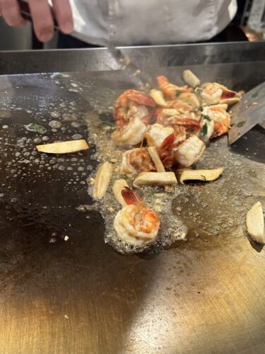海老を焼いていただきました!鉄板の目の前で焼いていただいたので香りがめちゃめちゃいい~!