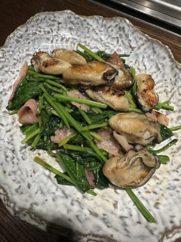 牡蠣ほうれんそうと一緒にいただきます!牡蠣とほうれん草の相性抜群ですね~!