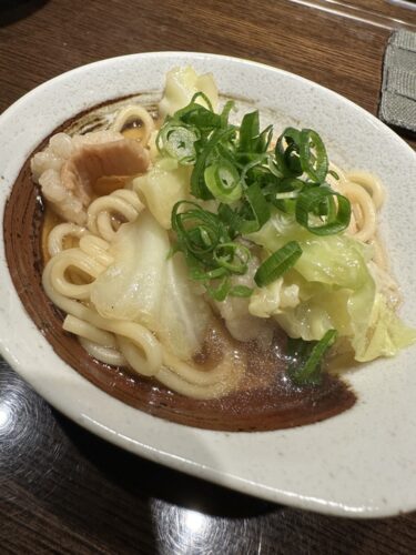 最後は先ほどのもつ鍋に麺を入れていただきました!ホルモンの旨味がしっかりでてるスープが最高!