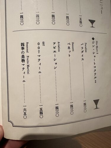 メニューをみてみるとカクテルがいろいろと用意されていました。