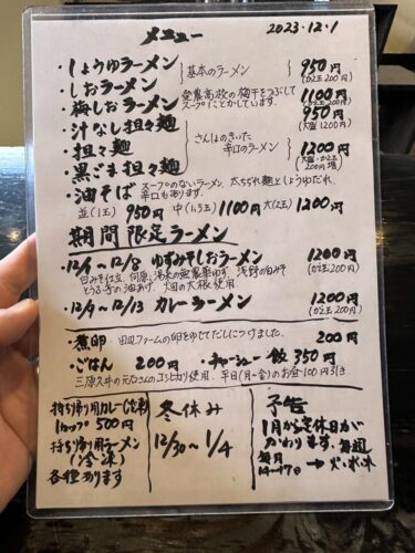 黒ごま担々麺って決まっているのですが一応はメニューを確認しておかないと。なぜならこの日の期間限定ラーメンが何かを確認しないといけないからです。(笑)