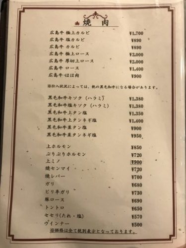少し遅かったからもう終わりなのかな~と何気なく入ってメニューを見てみるとキソクがありました!ハラミのことですね!三次や庄原方面ではキソクとよばれているそうです。ということでいろいろお願いしてみることに!
