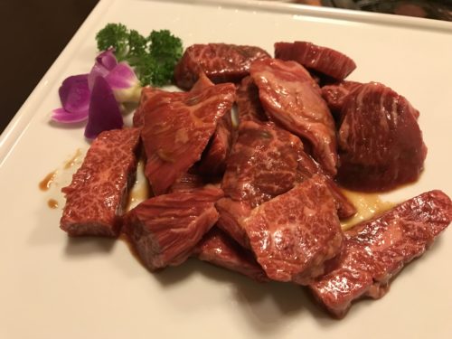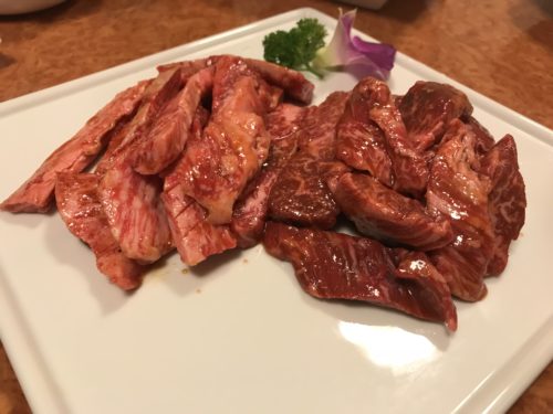 ここでカルビとキソクが登場しました!とってもおいしそう!霜の入り方もすごくいい状態を物語っています。いただいてみると、超おいしい!特にキソクがやばすぎます!超絶おいしい~!