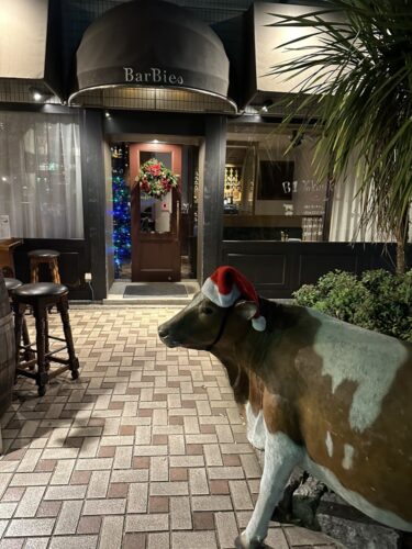 お店に到着すると想像よりもかなりシックな入口に少しびっくり!と思ったら牛さんがお出迎え!(笑)