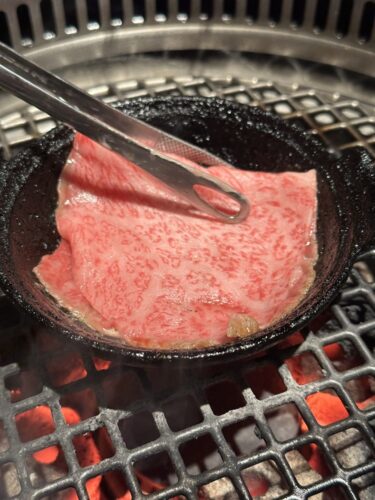 続いて鉄鍋が登場して炭火でしっかり焼き上げて、さらに鉄鍋でお肉を軽く焼いてくださいました。