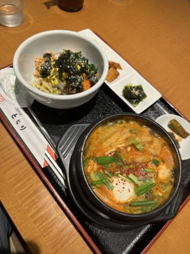 ということで一緒に行った知人の方はととりランチにされていました。私はスンドゥブとビビンバのセットをお願いしました!