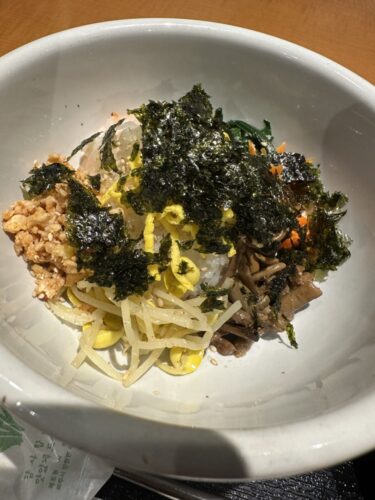 そして大好物のビビンバをいただきます!たっぷりコチュジャンを入れてしっかり混ぜていただきました!めちゃ美味しい~!