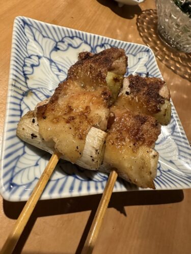 ねぎを抱き込んだ感じのねぎまが登場!これ抜群です!通常はねぎと鶏ももが別々で串に刺してある状態が多いと思いますがこうして抱き込んであるとより鶏肉との相性がわかりますね!