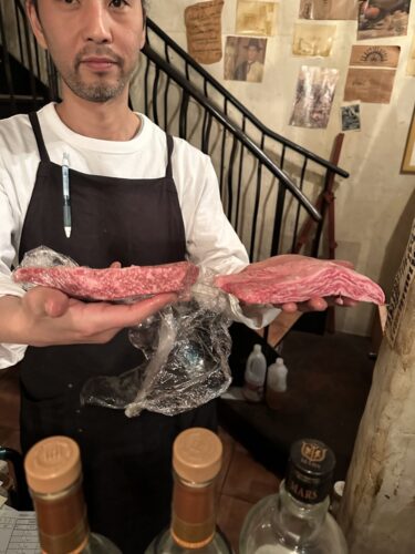 と2種類のお肉から選ばせてくださいました!では赤身ぽいほうのお肉でお願いします!