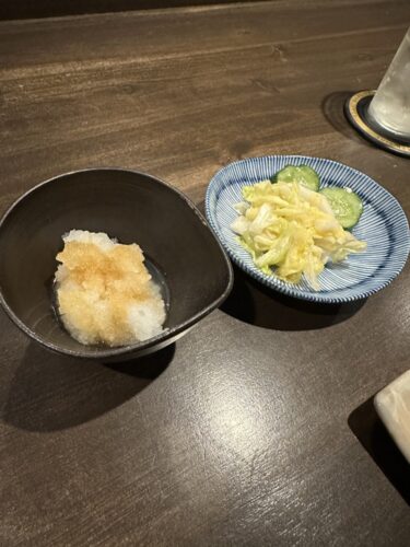 生ビールで乾杯させていただいてまずはつきだしのお漬物をいただきます。